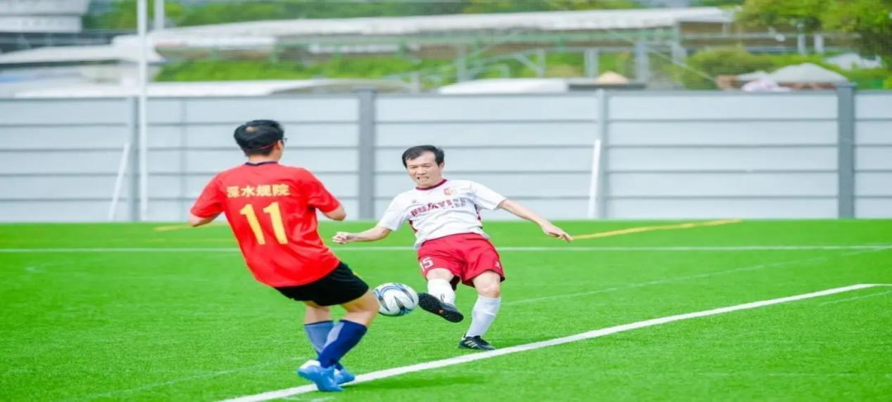 季軍爭奪戰(zhàn)在深水規(guī)院隊(紅色球衣)和華藝設(shè)計隊(白色球衣)之間展開。